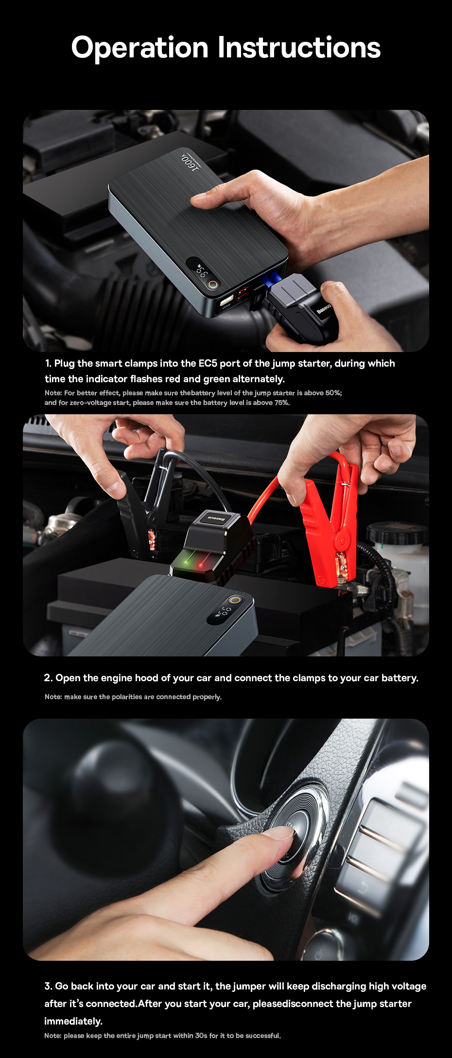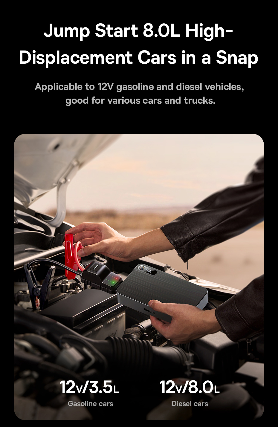 Bộ kích bình ô tô Baseus Super Energy Pro Car Jump Starter 1600A 16000mAh PD 65W 12V được thiết kế để đáp ứng nhu cầu khẩn cấp khi bình ắc quy của xe hết điện, yếu, hoặc không thể khởi động động cơ. Dưới đây là một số tính năng và hướng dẫn sử dụng của sản phẩm: