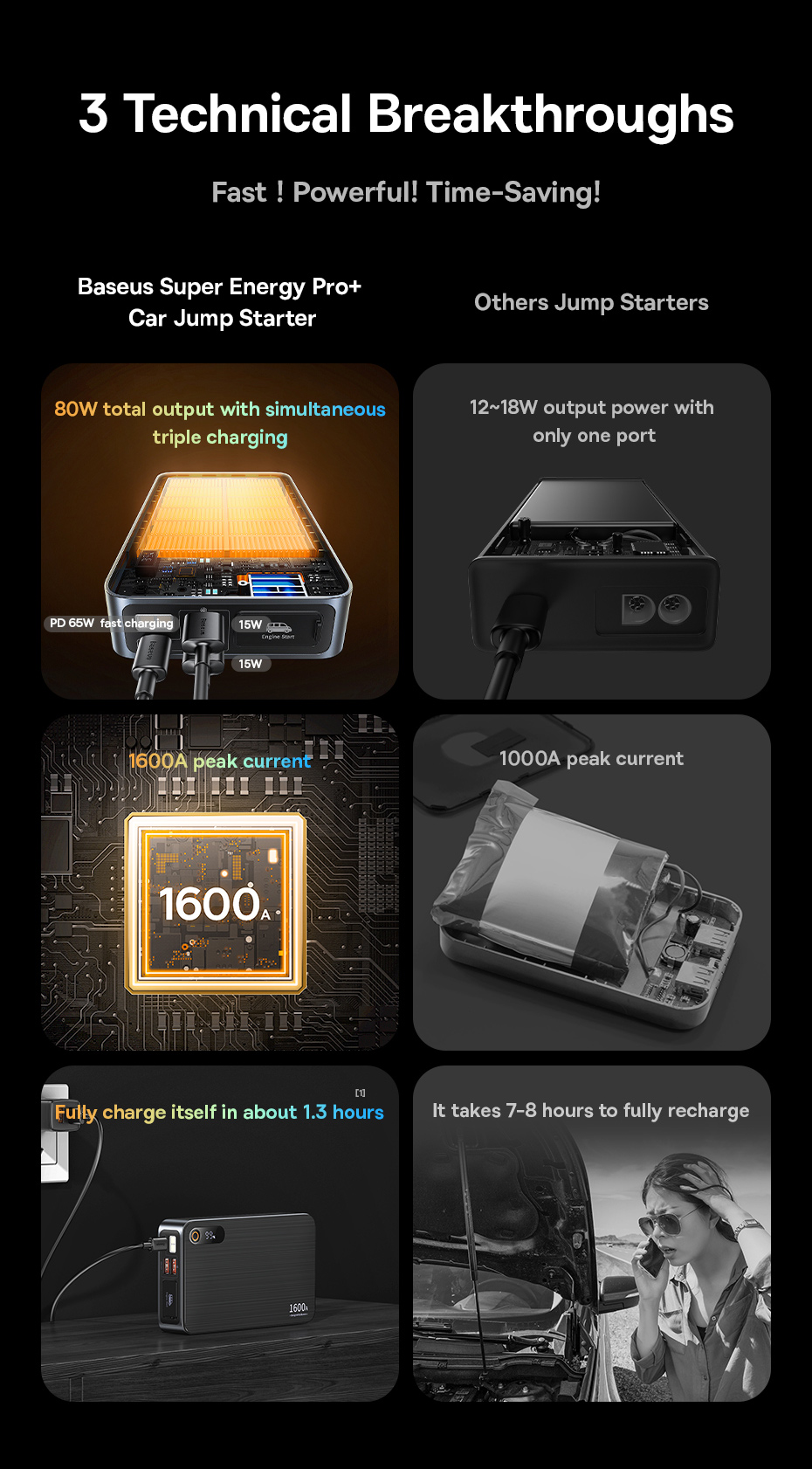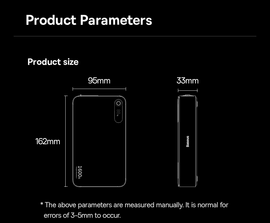 Thông số kỹ thuật chi tiết của sản phẩm “Baseus Super Energy Pro Black+ Car Jump Starter 1600A”: