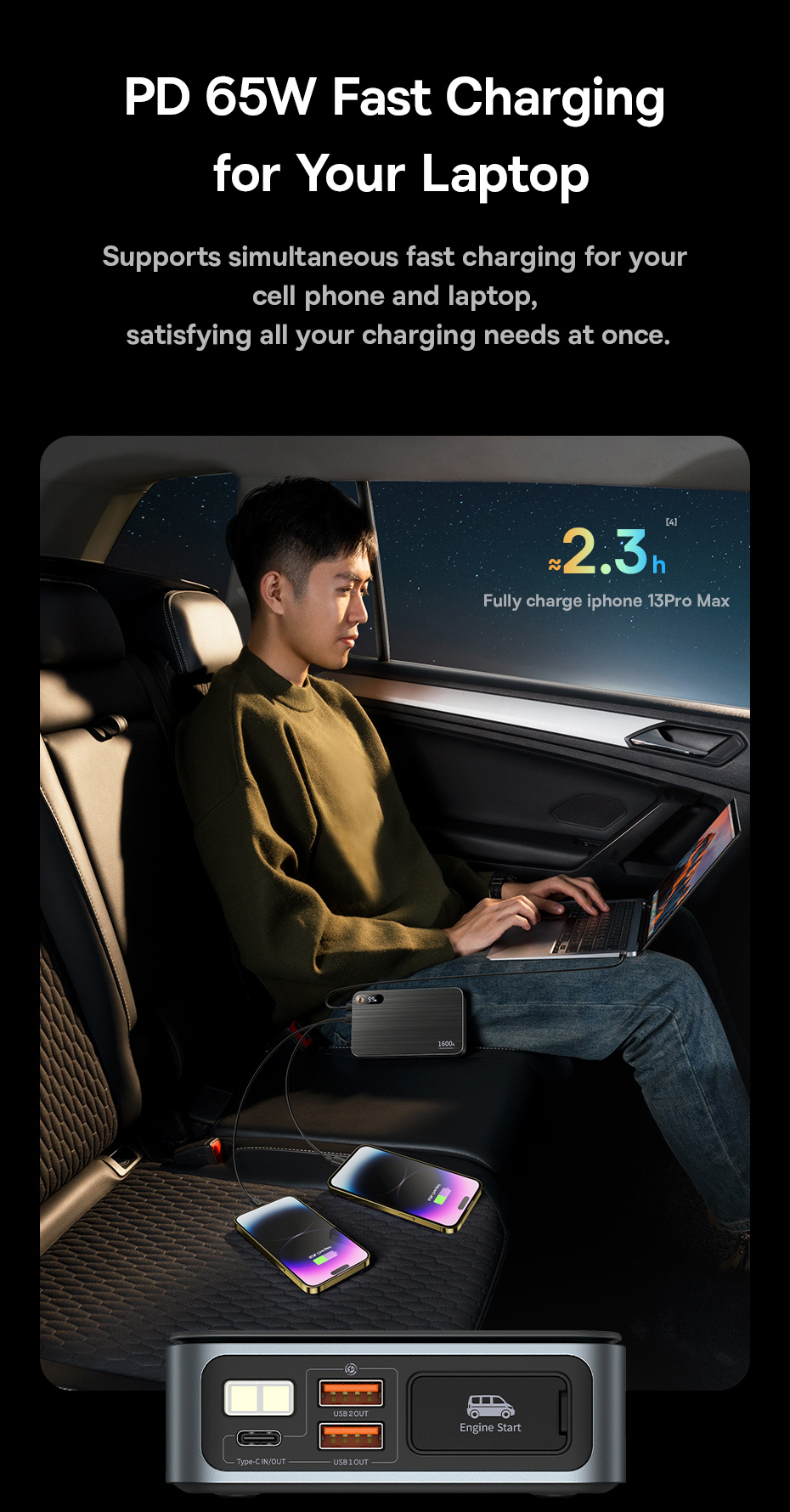 - Sạc nhanh PD 65W: Hỗ trợ sạc nhanh cho điện thoại di động và máy tính xách tay, đáp ứng nhu cầu sạc của bạn cùng một lúc.